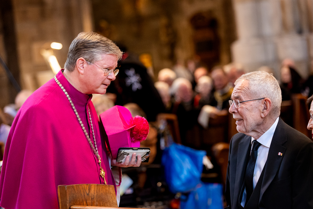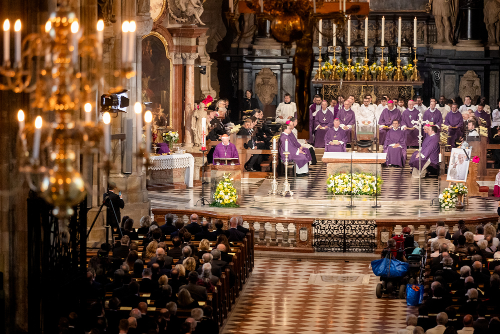 Mit einem "Requiem für seine Heiligkeit Papst Franziskus" nahm Österreich am Montagabend offiziell Abschied vom Papst. Dem Gottesdienst stand der Vorsitzende der Österreichischen Bischofskonferenz, Erzbischof Franz Lackner vor. Mit ihm konzelebrierten die heimischen Bischöfe. Die Politik war an erster Stelle von Bundespräsident Alexander Van der Bellen und Bundeskanzler Christian Stocker vertreten. Zahlreiche Gläubige gaben dem Papst im vollen Dom ebenfalls die letzte Ehre